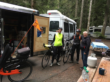 There are two options to being prepared. Being prepared and not being prepared (I learned that in boy scouts). Due to other commitments and the craziness with shipping and world wide demand for bikes, I chose a third option - there is always another option – I learned that in engineering school. Option 3: take a bunch of tools, a bunch of spare parts and a can-do attitude, and finish kitting the trailer, making final bike adjustments, fixing the RV, and creating camp widgets as we go. The RV repair place had my vehicle in stasis for 8 weeks without fixing anything, leaving me less than a week to do what I could. Brother Jon didn’t get a critical part for his new bike until he got to Seattle. Jon’s first test ride was the night before we started our journey. Daughter Ida received her new bike a couple weeks before the ride. Karry’s e-bike was 6 weeks late. Luckily my other brother Dave was able to grab the e-bike on his way through Boise as he joined up with us in Montana. Everything has worked out. But it did mean for the first couple of weeks every evening after riding I was fixing something. Now you know why this blog was so late in getting started.